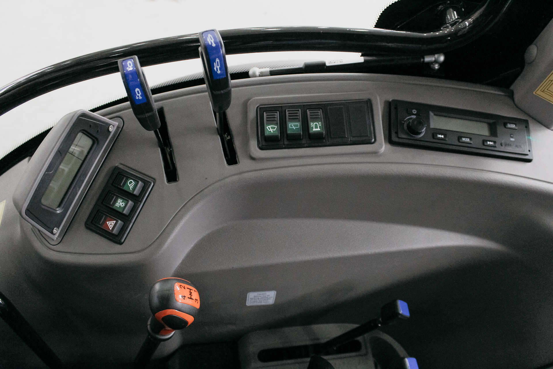 Кабина с отоплением и панорамным остеклением создает комфорт в любую погоду. Дорожный просвет 350 мм и радиус разворота 3,8 м обеспечивают высокую маневренность, а гидроусилитель руля облегчает управление.